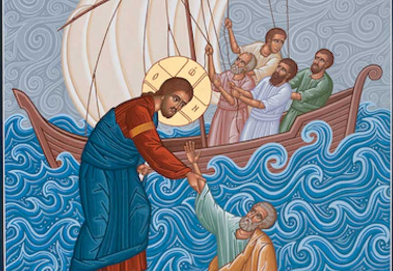 Μὲσα στὸν τρόμο τῆς τρικυμίας ὁ Πέτρος φώναξε: Κύριε, ἐάν εἶσαι σύ, δός μου τὴν ἐντολή νὰ ἔλθω κοντὰ σου. Καὶ μόλις ὁ Κύριος τὸν ἐκάλεσε, κατέβηκε ἀπὸ τὸ πλοῖο ὁ Πέτρος κι ἄρχισε νὰ περπατᾶ πάνω στὰ νερά. Ὅταν ὅμως κάποια στιγμὴ κοίταξε τὸν ἄνεμο ποὺ ἦταν πολὺ δυνατὸς, φοβήθηκε, ἄρχισε νὰ βουλιάζῃ κι ἐκραύγασε δυνατὰ: Κύριε, σῶσε με, θά πνιγῶ! Γιατὶ ὅμως συνέβη αὐτὸ; Ὁ Πέτρος ποὺ δὲν φοβήθηκε τὸν μεγαλύτερο κίνδυνο, νὰ περπατὴσῃ πάνω στὴ θάλασσα, τώρα φοβᾶται τὸν μικρότερο, τὸν ἄνεμο, μὴν τὸν ρίξῃ κάτω; Καὶ ἐνῷ ἦταν ψαρᾶς καὶ καλός κολυμβητὴς;